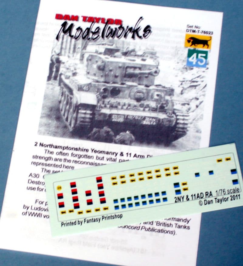 The often forgotten but vital parts of the division’s fighting strength are the reconnaissance and artillery elements. They are represented here with our second set of markings for 11th Armoured Division. 2nd Northamptonshire Yeomanry are the Reconnaissance Regiment
